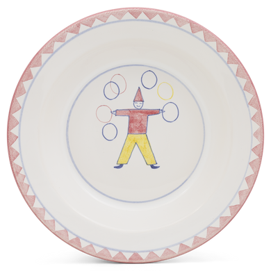 Der Kinderteller von Hedwig Bollhagen mit der Formnummer „590“ wird Junior in Entzücken versetzen. Auch als Suppenteller macht der 490 Gramm schwere, runde Kinderteller mit einem Durchmesser von 21,5 Zentimetern eine gute Figur. Charakteristisch sind der tiefe Spiegel sowie der griffige, dreieinhalb Zentimeter hohe Rand. Ob Grießbrei, Haferschleim oder zerquetschte Bananen, da kann nichts so leicht verschüttet werden. Erhältlich in zahlreichen lustigen Dekoren, werden nicht nur kleine Suppenkasper große Augen machen. Auch die Alten werden staunen, wenn der Kinderteller plötzlich ratzekahl leer gefuttert ist. Schön und funktional müssen eben kein Widerspruch sein. Der Kinderteller von Hedwig Bollhagen vereint beides.