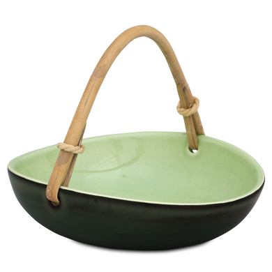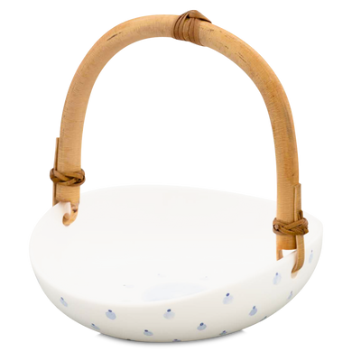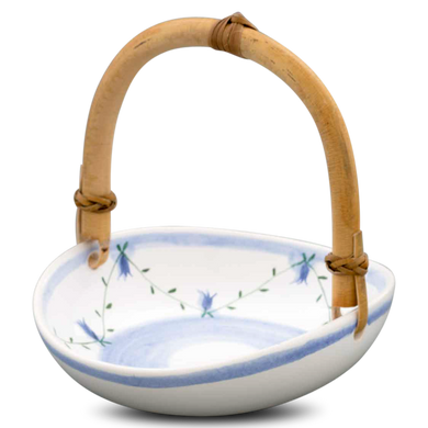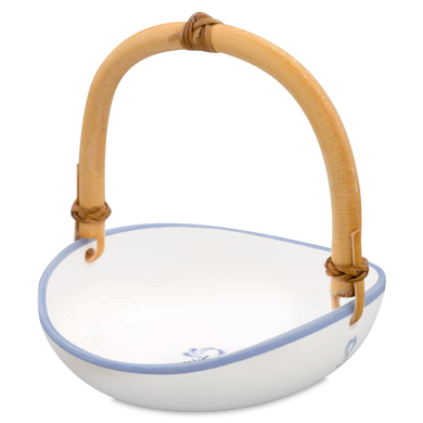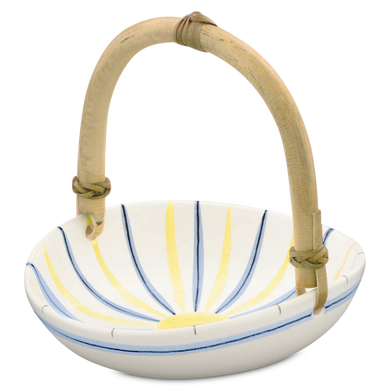 Das Körbchen von Hedwig Bollhagen mit der Formnummer „503B“ imponiert durch seine schöne und äußerst elegante Form. Charakteristisch sind der ellipsenartige, organisch geformte Korpus mit dem Basthenkel. Tiefer als ein Teller, flacher als eine Schüssel, könnte dieses vier Zentimeter hohe Körbchen bei einem Durchmesser von 15 Zentimetern auch als Schale durchgehen. Mit einem Fassungsvermögen von 0,2 Litern ist das 240 Gramm leichte Körbchen weder zu groß noch zu klein. Eins ist sicher, ob als Osterkörbchen für die sorbischen Eier, keramische Unterlage für den Präsentkorb oder weihnachtliche Deko-Schale für Mandeln, Nüsse und Krokant, dieses Körbchen kommt ganz groß raus.