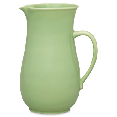Der Krug mit der Formnummer “W10” wurde von dem Bauhauskeramiker Werner Burri entworfen und besticht durch seine ursprüngliche Form. Charakteristisch ist der birnenförmige Korpus mit dem dezent nach außen fließenden Hals. Der etwa mittig angarnierte Henkel und die diametral gegenüberliegende, nach außen aufgestellte, tropfsichere Gießtülle runden das Bauhaus Design elegant ab. Bei einer Höhe von 26 Zentimetern und einer Breite von 20 Zentimetern ist der Krug fast so breit wie hoch. Und mit einem Fassungsvermögen von drei Litern gehört er schon zu den großen Durstlöschern im Sortiment von Hedwig Bollhagen. Seine klare Formensprache macht ihn zum einem Hauptprotagonisten einer gepflegten Tafel.