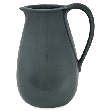Der Krug von Hedwig Bollhagen mit der Formnummer „1100“ überzeugt durch seine großzügige Form. Charakteristisch ist der voluminöse, birnenförmige Korpus. Der große, am oberen Rand anmontierte Henkel und die diametral gegenüberliegende, nach außen aufgestellte, tropfsichere Schneppe runden das urige Design gekonnt ab. Bei einem Durchmesser von 13 Zentimetern ist der 21 Zentimeter hohe Saftkrug mehr hoch als breit. Und bei einem Fassungsvermögen von einem Liter gehört der 700 Gramm schwere Saftkrug auch schon zu den großen im Sortiment von Hedwig Bollhagen. Eins ist sicher, sein nostalgisches Design und die robuste Keramik machen diesen Krug tagaus, tagein zur Allzweckwaffe.
