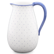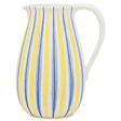 Der Krug von Hedwig Bollhagen mit der Formnummer „1100“ überzeugt durch seine großzügige Form. Charakteristisch ist der voluminöse, birnenförmige Korpus. Der große, am oberen Rand anmontierte Henkel und die diametral gegenüberliegende, nach außen aufgestellte, tropfsichere Schneppe runden das urige Design gekonnt ab. Bei einem Durchmesser von 13 Zentimetern ist der 21 Zentimeter hohe Saftkrug mehr hoch als breit. Und bei einem Fassungsvermögen von einem Liter gehört der 700 Gramm schwere Saftkrug auch schon zu den großen im Sortiment von Hedwig Bollhagen. Eins ist sicher, sein nostalgisches Design und die robuste Keramik machen diesen Krug tagaus, tagein zur Allzweckwaffe.