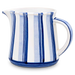 Fayence weiß mit verschieden blauen Senkrechtbändern Glasur glänzend