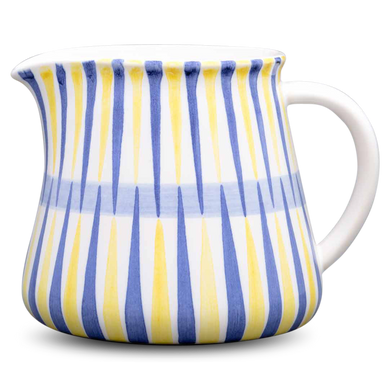Der große Milchtopf von Hedwig Bollhagen mit der Formnummer "551D" vereint ein harmonisches Retro-Design mit moderner, klarer Konturensprache. Typisch für den soliden Krug aus 480 Gramm formschöner Keramik ist ein zylindrische Korpus, der sich zu einem charmant geschwungenen Rand mit kleiner, tropfsicherer Schneppe erweitert. Der breite, leicht konkav gerundete Henkel garantiert, dass der 13 Zentimeter hohe sowie 14 Zentimeter breite Keramikkrug angenehm und sicher in der Hand liegt. Der 1,2 Liter fassende Milchtopf gehört zu den größeren Krügen im HB Sortiment und bietet sich nicht nur für Milch und Kakao an, sondern macht auch als Saftkrug und für andere Einsatzzwecke eine tolle Figur.