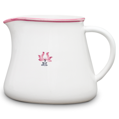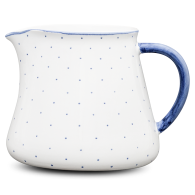 Der große Milchtopf von Hedwig Bollhagen mit der Formnummer "551E" vereint ein harmonisches Retro-Design mit moderner, klarer Konturensprache. Typisch für den soliden Krug aus 650 Gramm formschöner Keramik ist ein zylindrische Korpus, der sich zu einem charmant geschwungenen Rand mit kleiner, tropfsicherer Schneppe erweitert. Der breite, leicht konkav gerundete Henkel sorgt dafür, dass der 14 Zentimeter hohe sowie 16 Zentimeter breite Keramikkrug angenehm und sicher in der Hand liegt. Der 1,7 Liter fassende Milchtopf gehört zu den großen Krügen im HB Sortiment und bietet sich nicht nur für Milch und Kakao an, sondern macht auch als Saftkrug und für andere Einsatzzwecke eine tolle Figur.