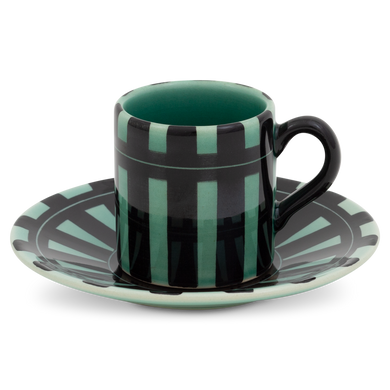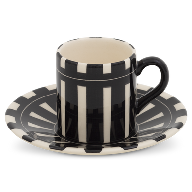 Das zweiteilige Set aus Mokkatasse und Untertasse von Hedwig Bollhagen mit der Formnummer 484 begeistert durch ein zeitloses Retro-Design im schlicht gefassten Konturenton. Charakteristisch ist der zylindrisch geformte 5,5 Zentimeter hohe wie breite Tassenkorpus mit geschwungenem Ohrenhenkel. Ein flacher Tassenboden garantiert, dass sich der miteingeschenkte Kaffeesatz beim Mokkagetränk unten absetzen kann. Zudem sorgt die solide, dickwandige Keramik für eine hohe Isolationsfähigkeit des Gefäßes, sodass der Kaffee möglichst lange warm bleibt. Mit einem Fassungsvermögen von 100 ml bietet die 180 Gramm leichte Mokkatasse ideale Voraussetzungen für authentischen Genuss. Die geradlinig leicht nach oben gewölbte Untertasse ergänzt das Tassendesign auf geschmackvolle Weise.