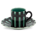 Das zweiteilige Set aus Mokkatasse und Untertasse von Hedwig Bollhagen mit der Formnummer 484 begeistert durch ein zeitloses Retro-Design im schlicht gefassten Konturenton. Charakteristisch ist der zylindrisch geformte 5,5 Zentimeter hohe wie breite Tassenkorpus mit geschwungenem Ohrenhenkel. Ein flacher Tassenboden garantiert, dass sich der miteingeschenkte Kaffeesatz beim Mokkagetränk unten absetzen kann. Zudem sorgt die solide, dickwandige Keramik für eine hohe Isolationsfähigkeit des Gefäßes, sodass der Kaffee möglichst lange warm bleibt. Mit einem Fassungsvermögen von 100 ml bietet die 180 Gramm leichte Mokkatasse ideale Voraussetzungen für authentischen Genuss. Die geradlinig leicht nach oben gewölbte Untertasse ergänzt das Tassendesign auf geschmackvolle Weise.