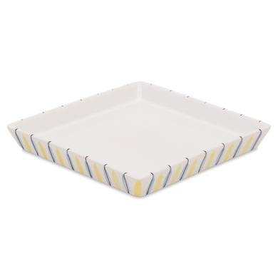 Die Platte von Hedwig Bollhagen mit der Formnummer „493“ geht genauso gut auch als Tablett oder extravaganter Dessertteller durch. Mit ihrer quadratischen Form könnte diese Platte aber auch die kleine Schwester vom Kabarett-Tablett mit der Formnummer 553 sein. 16 Zentimeter lang und ebenso breit, ist diese Platte von Hedwig Bollhagen jedenfalls wie gemacht zum Servieren von Pinchos, Paellas oder Canapés. Das Auge isst ja bekanntlich mit. Und auf der zwei Zentimeter hohen und 310 Gramm schweren, quadratischen Platte bringen Tapas ihre appetitanregende Wirkung schließlich erst so richtig zur Entfaltung. Schön und funktional müssen eben kein Widerspruch sein.