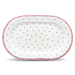 Fayence weiss mit blauen Punkten und rosa Rand Glasur glänzend