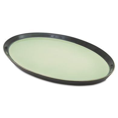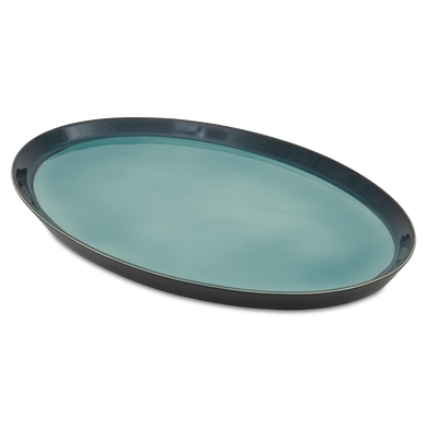 Die Platte von Hedwig Bollhagen mit der Formnummer „484“ ist ein praktischer Allrounder, der ästhetische und funktionale Qualitäten ideal in Einklang bringt. Charakteristisch ist das oval geschwungene Platten-Design mit harmonisch fließender Konturenzeichnung. Mit einer Länge von 39 Zentimetern und einer Breite von 25 Zentimetern besitzt die Platte ideale Maße, um für diverse Anlässe eingesetzt zu werden und dabei stets einen geschmackvollen Hingucker abzugeben. Dank des 2,5 Zentimeter hohen Rands eignet sich die Keramikplatte hervorragend als Servierplatte und Tablett zum dekorativen Anreichen von Tapas, hors-d'œuvre und Co. Damit präsentiert sich die Platte 484 insgesamt als Paradebeispiel traditionell handgemachter Qualität der Hedwig Bollhagen Werkstätten in Marwitz.