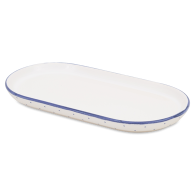 Die Platte von Hedwig Bollhagen mit der Formnummer „486“ geht genauso gut auch als Tablett durch. Charakteristisch ist der ellipsenförmige Korpus. Bei einer Länge von 24 Zentimetern und einer Breite von zwölf Zentimetern könnte diese Platte aber auch als die zweieiige, ovale Zwillingsschwester der rechteckigen Platte mit der Formnummer 852 sein. Mit seiner abgerundeten Form ist das 400 Gramm schwere Tablett jedenfalls wie gemacht zum Zureichen von Essig-Öl-Flaschen oder Salz und Pfeffer Menagen. Auch Tapas, Petit Fours oder Biscuit-Kekse lassen sich auf dieser zwei Zentimeter hohen Platte stilvoll und formvollendet servieren. Eins ist sicher, dieses ovale Tablett ist ein Haushaltshelfer par excellence.