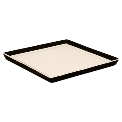 Die Platte von Hedwig Bollhagen mit der Formnummer „553“ ist den Mitarbeitern der Marwitzer Keramik-Manufaktur auch unter dem Namen „Kabarett-Tablett“ geläufig. Charakteristisch ist die quadratische Form. 24 Zentimeter lang und ebenso breit, gehört die ein Kilogramm schwere und zwei Zentimeter hohe Platte zu den ganz großen im Sortiment von Hedwig Bollhagen. Und flexibel in der Nutzung ist sie auch: In einem fünfteiligen Set lässt sich das quadratische Tablett nämlich mit vier kleineren, quadratischen Schalen kombinieren. Diese Servier-Platte ist nicht nur eine Allzweckwaffe, die sich im Alltag flexibel einsetzen lässt, sondern zieht auch sonst alle Blicke auf sich.