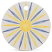 Fayence weiß gelbe Bänder und blaue Striche Glasur glänzend