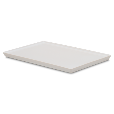 Die Platte von Hedwig Bollhagen mit der Formnummer „852“ ist genaugenommen ein Tablett. Bei einer Länge von 24 Zentimetern und einer Breite von zwölf Zentimetern könnte diese Platte sogar als die kleine Schwester vom Kabarett-Tablett mit der Formnummer 540 durchgehen. Mit der rechteckigen Form ist diese Platte von Hedwig Bollhagen jedenfalls wie gemacht für Strudel, Braten, Knabbereien und Co. Und eins ist sicher, wenn der Rehrücken oder die französischen Törtchen aus Buttercreme auf der etwas mehr als zwei Zentimeter hohen und 530 Gramm schweren, keramischen Platte so richtig in Szene gesetzt werden, dann tropfen die Geschmacksknospen.