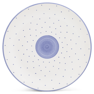 Fayence weiß mit blauen Punkten und Abschluß Glasur glänzend
