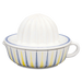 Die Pampelmusenpresse mit der Formnummer “488” von Hedwig Bollhagen ist die große Schwester der kleineren Zitronenpresse 576. Charakteristisch für das zweiteilige Set ist die mittig pyramidenähnlich angeordnete, sternförmig-gerippte Pampelmusenpresse. Löcher im Auffangbecken leiten den Saft ab. Das zylinderförmige Auffanggefäß mit der nach Außen aufgestellten, tropfsicheren Schneppe und dem diametral gegenüberliegenden, halbkreisförmigen Henkel ergänzen das Design harmonisch. Bei einem Fassungsvermögen von 0,4 Litern hat die zwölf Zentimeter hohe Pampelmusenpresse ausreichend Volumen um einen Becher Vitamin C Drink zu füllen. Ob fruchtige Pomelo, süße Orange oder bittere Grapefruit, mit der Pampelmusenpresse 488 lässt sich der gesunde Saft schnell und stilvoll zubereiten.