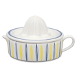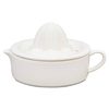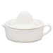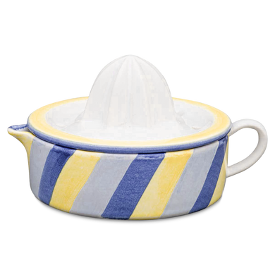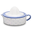 Die Zitronenpresse mit der Formnummer “576” von Hedwig Bollhagen ist die kleine Schwester der größeren Pampelmusenpresse 488. Charakteristisch für das zweiteilige Set ist die mittig pyramidenähnlich angeordnete, sternförmig-gerippte Zitronenpresse. Löcher im Auffangbecken leiten den Saft ab. Das zylinderförmige Auffanggefäß mit der nach außen aufgestellten, tropfsicheren Schneppe und dem diametral gegenüberliegenden, halbkreisförmigen Henkel ergänzen das Design harmonisch. Bei einer Höhe von acht Zentimetern und einer Breite von elf Zentimetern ist die Zitronenpresse fast so hoch wie breit. Und bei einem Fassungsvermögen von 0,2 Litern ist sie weder zu klein noch zu groß. Eins ist sicher, mit der Zitronenpresse von Hedwig Bollhagen lässt sich der Vitamin-C-Drink schnell und vor allem stilvoll zubereiten.