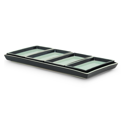 Mit dem 5-teiligen Schälchen-Set HB 538 von Hedwig Bollhagen verwandeln Sie jede Tafel in ein stilvolles Erlebnis. Das Set besteht aus einer eleganten rechteckigen Platte (HB 540), die mit 34 cm Länge und 16 cm Breite ideal für Brot, Rührkuchen oder Tapas ist auch als elegante Servierplatte für Braten oder kreative Arrangements beeindruckt. Begleitet wird die Servierplatte von vier charmanten Schälchen (HB 538), die mit ihrem minimalistischen Design und den Maßen von 15 cm x 8 cm vielseitig einsetzbar sind. Ob für Vorspeisen, kleine Beilagen oder Leckereien – die Schälchen fügen sich perfekt in jede Umgebung ein. Die charaktervolle Formsprache der "Kabarett"-Serie vereint zeitlose Ästhetik mit funktionaler Handwerkskunst. Handgefertigt in den Marwitzer Werkstätten, verdeutlicht dieses Set die traditionsreiche Handwerkskunst und Liebe zum Detail, für die Hedwig Bollhagen seit 1934 bekannt ist. Ein Set, das Ihre Tischkultur elegant erweitert und für jeden Anlass die passende Lösung bietet.