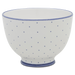 Fayence weiß mit blauen Punkten und Abschluß Glasur glänzend