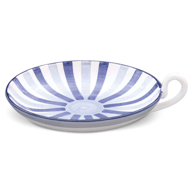 Fayence weiß - blaue und hellblaue Streifen - Glasur glänzend