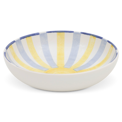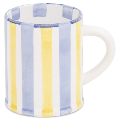 Fayence weiß gelb blaue Streifen Glasur glänzend