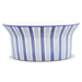 Fayence weiß - blaue und hellblaue Streifen - Glasur glänzend