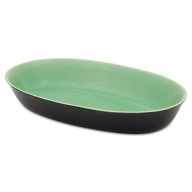 Der Brotkorb von Hedwig Bollhagen mit der Formnummer „520“ macht auch als Auflaufform eine gute Figur. Immerhin, der glasierte und bei 1070 Grad Celsius gebrannte Brotkorb kann sogar Ofenhitze ab. Charakteristisch ist die rechteckig-ovale Form mit dem etwa fünf Zentimeter hohen, leicht konisch nach außen fließendem Rand. Bei einer Länge von 30,5 Zentimetern und einer Breite von 18 Zentimetern gehört der 760 Gramm schwere Brotkorb schon zu den ganz großen Keramiken im Sortiment. So viel steht jedenfalls fest: Ob Brunch-Buffet, Candlelight-Dinner oder Picknick auf dem Balkon, der formschöne Brotkorb von Hedwig Bollhagen lässt Baguette, Bauernkruste und Co. im Schatten stehen.