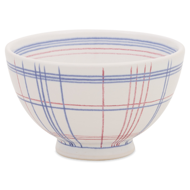 Fayence weiß mit blauem Gitter Glasur glänzend