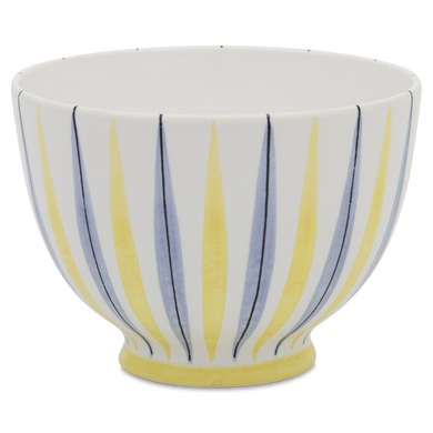 Die Schale von Hedwig Bollhagen mit der Formnummer „549C“ ist die große Schwester der etwas kleineren Schale mit der Formnummer 549B. Charakteristisch ist der kugelförmig-gebauchte, sich nach oben hin öffnende Korpus. Das Gefäß, das die Mitarbeiter der Marwitzer Keramik-Manufaktur auch gerne „Kumpen“ nennen, steht auf einem etwa eineinhalb Zentimeter hohen, zylinderförmigen Fuß. Bei einem Durchmesser von 14 Zentimetern ist die zehn Zentimeter hohe Schale tiefer als ein Teller, aber flacher als eine Schüssel. Und mit einem Fassungsvermögen von einem halben Liter gehört der 400 Gramm schwere Kumpen wohl eher zu den größeren Schalen im Sortiment von Hedwig Bollhagen.