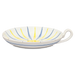 Fayence weiß gelbe Bänder und blaue Striche Glasur glänzend