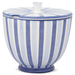 Fayence weiß - blaue und hellblaue Streifen - Glasur glänzend