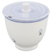 Die Terrine mit der Formnummer 549E von Hedwig Bollhagen besticht durch ihre zeitlose, funktionale Form. Bei einer Höhe von 19 Zentimetern und einer Breite von 19,5 Zentimetern ist die Terrine fast so hoch wie breit. Und mit einem Fassungsvermögen von immerhin drei Litern gehört diese Terrine wohl auch schon zu den größeren Keramiken von Hedwig Bollhagen. Charakteristisch für das zweiteilige Set aus Gefäß und Deckel sind der bauchig geformte, nach oben zylinderförmig sich öffnende Korpus und der pilzförmige, angarnierte Knauf auf dem flachen Deckel. Eine etwa einen Zentimeter kleine, halbrunde Öffnung am Deckelrand ermöglicht es, die Suppenkelle sauber in der Terrine zu lassen. Den Deckel erhalten Sie auf Wunsch aber auch ohne Öffnung.