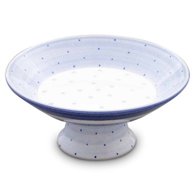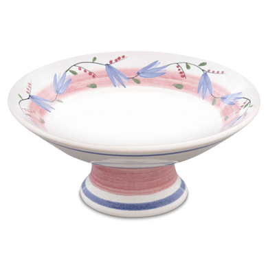 Die Fußschale von Hedwig Bollhagen mit der Formnummer „612“ geht eine glückliche Synthese von Kunst und Handwerk ein. Schön ist eben, was funktioniert. Charakteristisch ist der kegelförmige Fuß und die sich konisch nach oben öffnende, runde Schale. Bei einem Durchmesser von 16 Zentimetern ist die sieben Zentimeter hohe Schale mehr als doppelt so breit wie hoch. Mit einem Volumen von 0,2 Litern gehört die Fußschale eher zu den kleinen, aber nicht minder feinen im Sortiment von Hedwig Bollhagen. Ob Weintrauben, Ananas oder Äpfel, auf der 300 Gramm schweren Fußschale lassen sich Früchte aller Art stilvoll kredenzen.