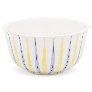 Die Schüssel mit der Formnummer “599” wurde von Hedwig Bollhagen als Kompottschüssel konzipiert. Charakteristisch ist der etwas bauchige, zum Rand hin leicht konisch nach Außen fließende Korpus. Bei einer Höhe von 13,5 Zentimetern und einer Breite von 19 Zentimetern ist die Schüssel nicht ganz so hoch wie breit. Und mit einem Fassungsvermögen von 1,4 Litern gehört die Kompottschüssel schon zu den etwas größeren im keramischen Sortiment. Die klare, schnörkellose Formensprache und die robuste Keramik machen diese Kompottschüssel zum praktischen Helfer im Alltag. Ob Kaltschale, Spätzle oder Fruchtmus, die Schüssel 599 gibt Ihren Speisen einen schönen Rahmen.