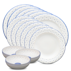 Fayence weiß mit blauen Punkten und Abschluß Glasur glänzend