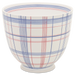 Fayence weiss mit blauen und roten Strichen Glasur glänzend