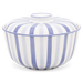 Fayence weiß - blaue und hellblaue Streifen - Glasur glänzend