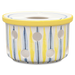 Fayence weiß gelbe Bänder und blaue Striche Glasur glänzend