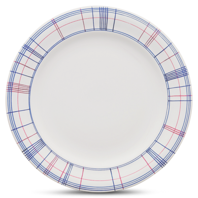Fayence weiss mit blauen und roten Strichen Glasur glänzend