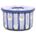 Fayence weiß - blaue und hellblaue Streifen - Glasur glänzend