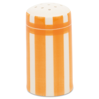 Der Salzstreuer mit der Formnummer “523” von Hedwig Bollhagen bringt die richtige Würze auf den Küchentisch. Charakteristisch sind der einfache, zylinderförmige Korpus und der konvexe, gleichmäßig gelöcherte Kopf. Am Fuß befindet sich die nicht sichtbare Öffnung zum Befüllen des Salzstreuers. Bei einer Höhe von achteinhalb Zentimetern und einer Breite von viereinhalb Zentimetern ist der Salzstreuer nicht nur halb so breit wie hoch, sondern gehört auch eher zu den Leichtgewichten in der keramischen Kollektion von Hedwig Bollhagen. Zwar klein, aber nicht minder fein, darf dieser Salzstreuer weder beim stilvollen Dinner noch beim urigen Picknick im Biergarten, fehlen.