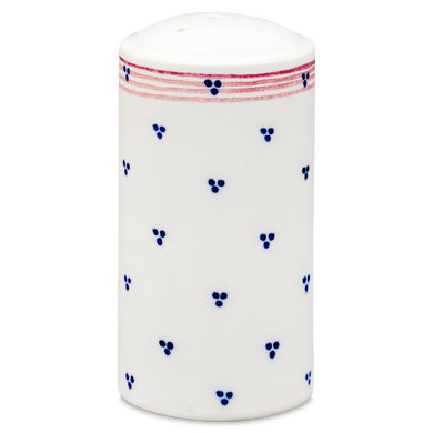 Der Pfefferstreuer mit der Formnummer “523P” von Hedwig Bollhagen bringt nicht nur die richtige Geschmacksintensität ans Essen, sondern überzeugt auch durch seine zeitlose, funktionale Form. Charakteristisch sind der einfache, zylinderförmige Korpus und der etwas konvexe, dreimal gelöcherte Kopf. Am Fuß befindet sich die nicht sichtbare Öffnung zum Befüllen des Pfefferstreuers. Bei einer Höhe von achteinhalb Zentimetern und einer Breite von viereinhalb Zentimetern ist der Pfefferstreuer nicht nur halb so breit wie hoch, sondern gehört auch eher zu den Leichtgewichten in der keramischen Kollektion von Hedwig Bollhagen. Zwar klein, aber nicht minder fein, gehört dieser Pfefferstreuer wie sein Bruder der Salzstreuer 523 zu jeder Mahlzeit dazu.