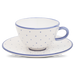 Fayence weiß mit blauen Punkten und Abschluß Glasur glänzend
