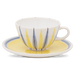 Die Kaffeetasse mit der Formnummer „1065“ gehört wohl inzwischen zu den heimlichen Klassikern aus der Keramikmanufaktur von Hedwig Bollhagen. Die zeitlos schlichte Kaffeetasse prägte schon das Alltagsdesign in der ehemaligen DDR und wird heute von Designliebhabern wieder entdeckt. Charakteristisch ist das nach oben großzügig geöffnete, kugelförmig-gebauchte Gefäß. Nach unten findet der filigrane Fuß der Kaffeetasse in der kreisrunden Öffnung der Untertasse stabilen Halt. Mit einem Fassungsvermögen von 0,15 Litern gehört die 240 Gramm leichte, sechs Zentimeter hohe und vierzehn Zentimeter breite Kaffeetasse schon zu den etwas größeren ihrer Art. Ob Muckefuck, Blümchenkaffee oder Arabica, in der Kaffeekanne von Hedwig Bollhagen lässt sich der Sonntagskaffee besonders stilvoll servieren.