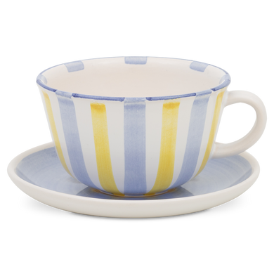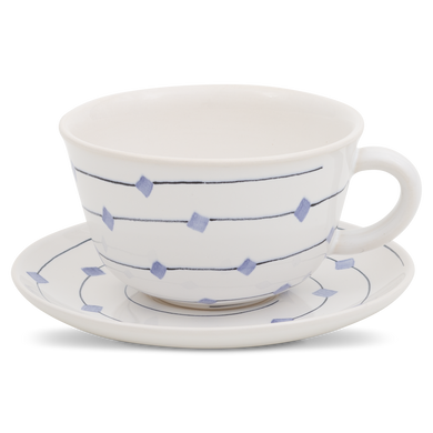 Die Milchkaffeetasse von Hedwig Bollhagen mit der Formnummer „490“ besticht durch ihre einfache und schnörkellose Form. Mit einem Fassungsvermögen von 0,3 Litern ist die sieben Zentimeter hohe und zwölf Zentimeter breite Milchkaffeetasse weder zu klein noch zu groß. Charakteristisch für das zweiteilige Set aus Tasse und Untertasse ist der halbrund geschwungene Henkel. Und sollte beim Servieren doch mal ein kleines Malheur passieren und der Milchkaffee über den filigranen Rand der Tasse schwappen, dann fängt die nach oben leicht gebogene Untertasse mit Sicherheit alles auf. Eins ist sicher, ob Kaffee mit viel heißer Milch oder Milchschaum, in der Milchkaffeetasse von Hedwig Bollhagen lassen sich Heißgetränke aller Art trinkgerecht servieren.
