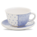 Fayence hälftig blau und weiß mit Punkten Glasur glänzend
