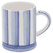 Fayence weiß mit verschieden blauen Senkrechtbändern Glasur glänzend