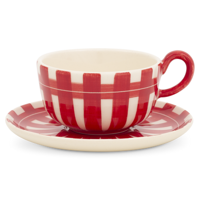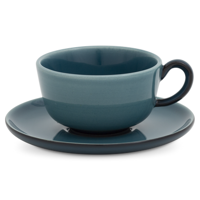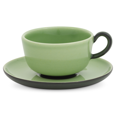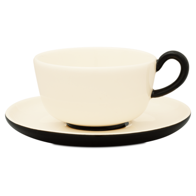 Die zweiteilige Mokka-Espresso-Tasse von Hedwig Bollhagen mit der Formnummer „561“ besticht durch ihre rustikale Form. Charakteristisch für das zweiteilige Set aus Tasse und Untertasse sind der Ohrenhenkel und die dickwandige Keramik. Dank der kompakten Wandstärke ist die Isolationsfähigkeit dieser Tasse recht hoch. Dadurch bleibt der Mokka oder auch Espresso Macchiato länger heiß. Mit einem Fassungsvermögen von 0,1 Litern ist die Espressotasse weder zu groß noch zu klein. Nach oben öffnet sich das vier Zentimeter niedrige und siebeneinhalb Zentimeter breite Gefäß großzügig und lässt für den Milchschaum auf dem Macchiato ausreichend Platz. Nach unten findet die urige Tasse in der kreisrunden Öffnung der etwas stärker nach oben gewölbten Untertasse einen sicheren Halt.