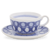 Fayence weiß blau Querbänder und Kreise Glasur glänzend