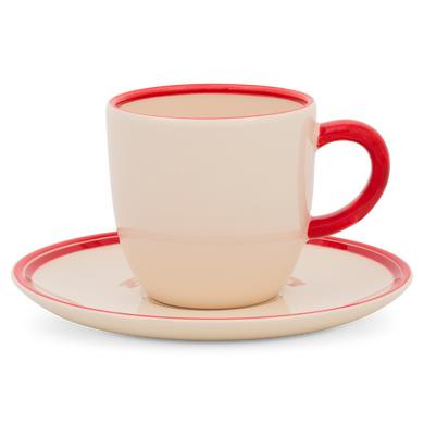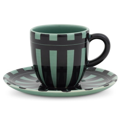 Die zweiteilige Cappuccinotasse von Hedwig Bollhagen mit der Formnummer „573“ besteht aus Tasse und Untertasse. Die dickwandige Keramiktasse isoliert das darin befindliche Heißgetränk perfekt, so dass es länger warm bleibt. Mit einem Fassungsvermögen von 0,2 Litern gehört die 320 Gramm leichte Cappuccinotasse schon zu den größeren ihrer Sorte. Nach oben ist das achteinhalb Zentimeter hohe Gefäß leicht geöffnet und lässt dem Milchschaum ausreichend Platz. Nach unten findet die Tasse in der kreisrunden Öffnung der Untertasse (Durchmesser etwa 15 Zentimeter) einen sicheren Halt. So viel steht fest, ob Cappuccino, Mokkacino oder Cafe au Lait, in der Cappuccinotasse von Hedwig Bollhagen lassen sich Heißgetränke aller Art stilvoll kredenzen.