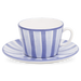 Die Kaffeetasse von Hedwig Bollhagen mit der Formnummer „588“ überzeugt durch ihre schlichte und klare Form. Mit einem Fassungsvermögen von nur 0,1 Liter gehört die 270 Gramm leichte, sechs Zentimeter niedrige und zehn Zentimeter breite Kaffeetasse wohl zu den etwas kleineren ihrer Sorte. Charakteristisch für das zweiteilige Set sind der konische Korpus der Tasse und der leicht nach oben gebogene Rand der Untertasse. Nach unten findet das Gefäß in der kreisrunden Öffnung der Untertasse einen festen Halt. Und sollte beim Servieren doch mal ein kleines Missgeschick geschehen und etwas vom Kaffee über den Gefäßrand schwappen, dann tropft das Heißgetränk wenigstens nicht auf den Tisch. So viel steht fest, mit der Kaffeetasse von Hedwig Bollhagen lässt sich das tägliche Kaffeeritual formvollendet zelebrieren.